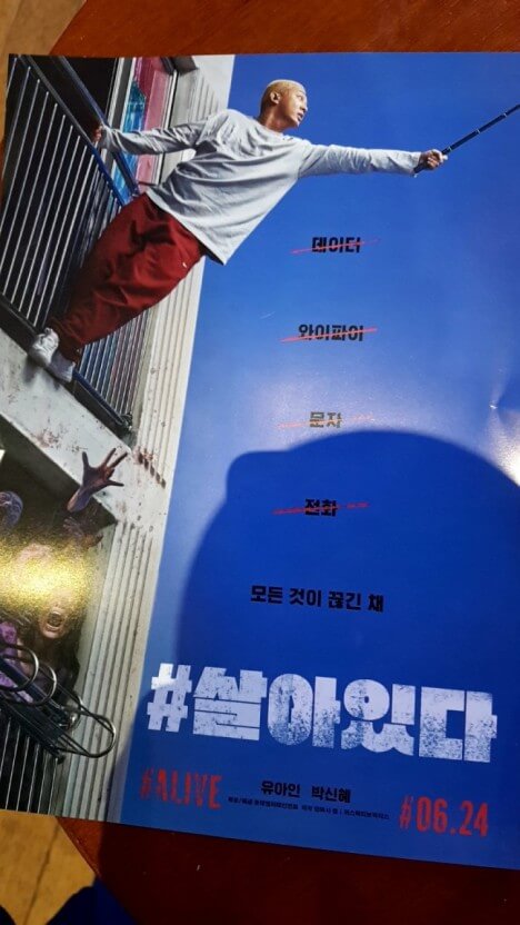 제가 오늘 이야기하고 싶은 영화는 2020년 6월 24일에 볼 수 있었던 영화 '살아있다'입니다.